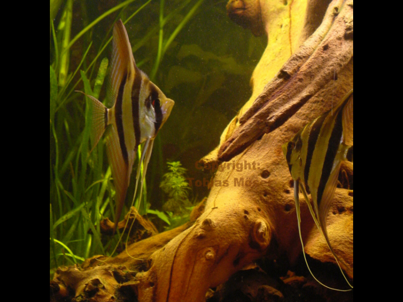 Das Bild (Copyright bei Tobias Möser - http://www.tobias-moeser.de) zeigt 3 Jungtiere des Altum-Skalares im Alter von etwa 8 Monaten. Im nachfolgenden Bild sind zwei der drei Tiere im Alter von 3,5 Jahren in einer Höhe von nunmehr 22 cm zu sehen.